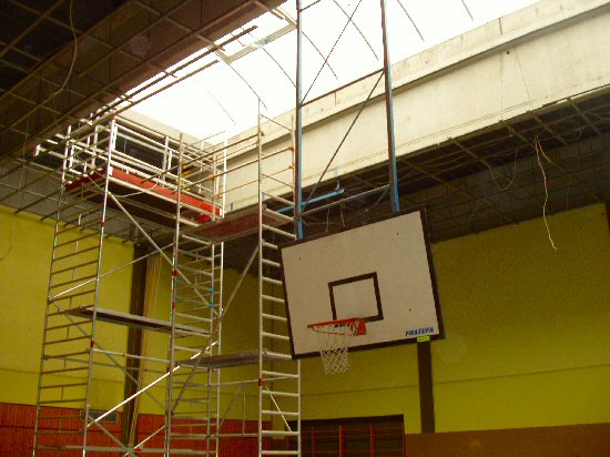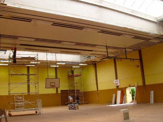 - In der Turnhalle der Kottenschule wurde eine ballwurfsichere Metallpaneldecke eingebaut.